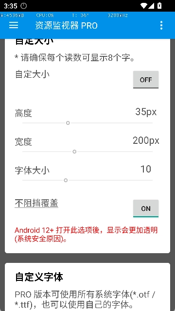 2.监控窗口可在屏幕任意位置自由摆放,并且支持调整其大小、颜色以及透明度。