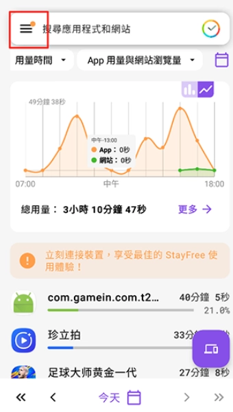 StayFree界面非常精简,并且软件没有广告,观感非常舒适,用上它也许可以帮你成功戒掉手机瘾。