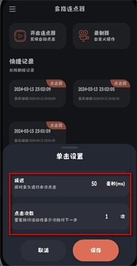 3、需要设置一下单击次数和延迟时间,点保存。
